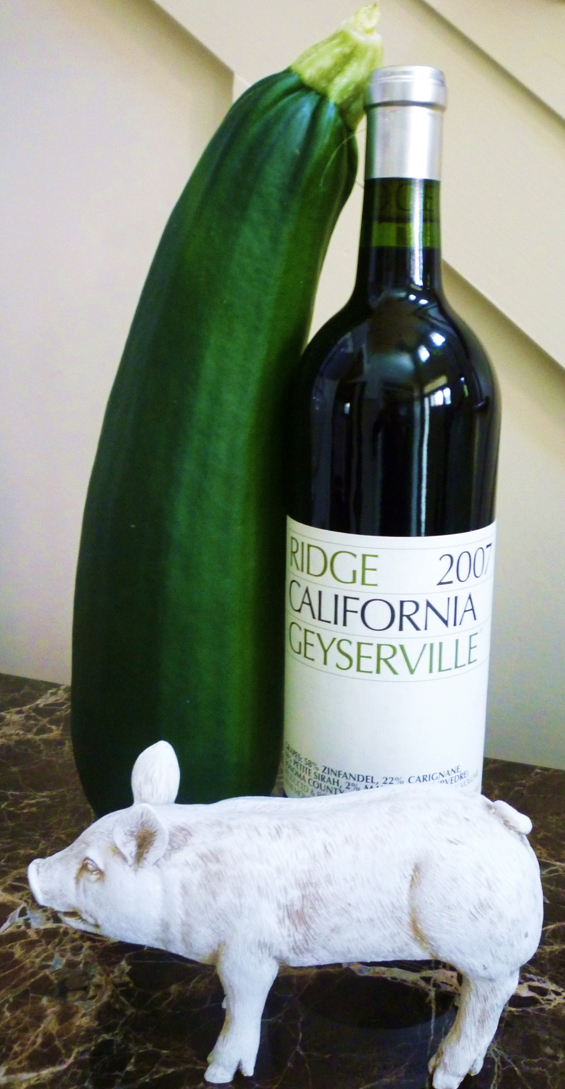 Well, the enormous zucchini I managed to miss in the garden will become zucchini bread tonight (recipe here). The bottle of red wine will be enjoyed during said domestic activity and after enjoying the wine and of course sampling copious amounts of fresh baked bread, I will surely feel like a pig.