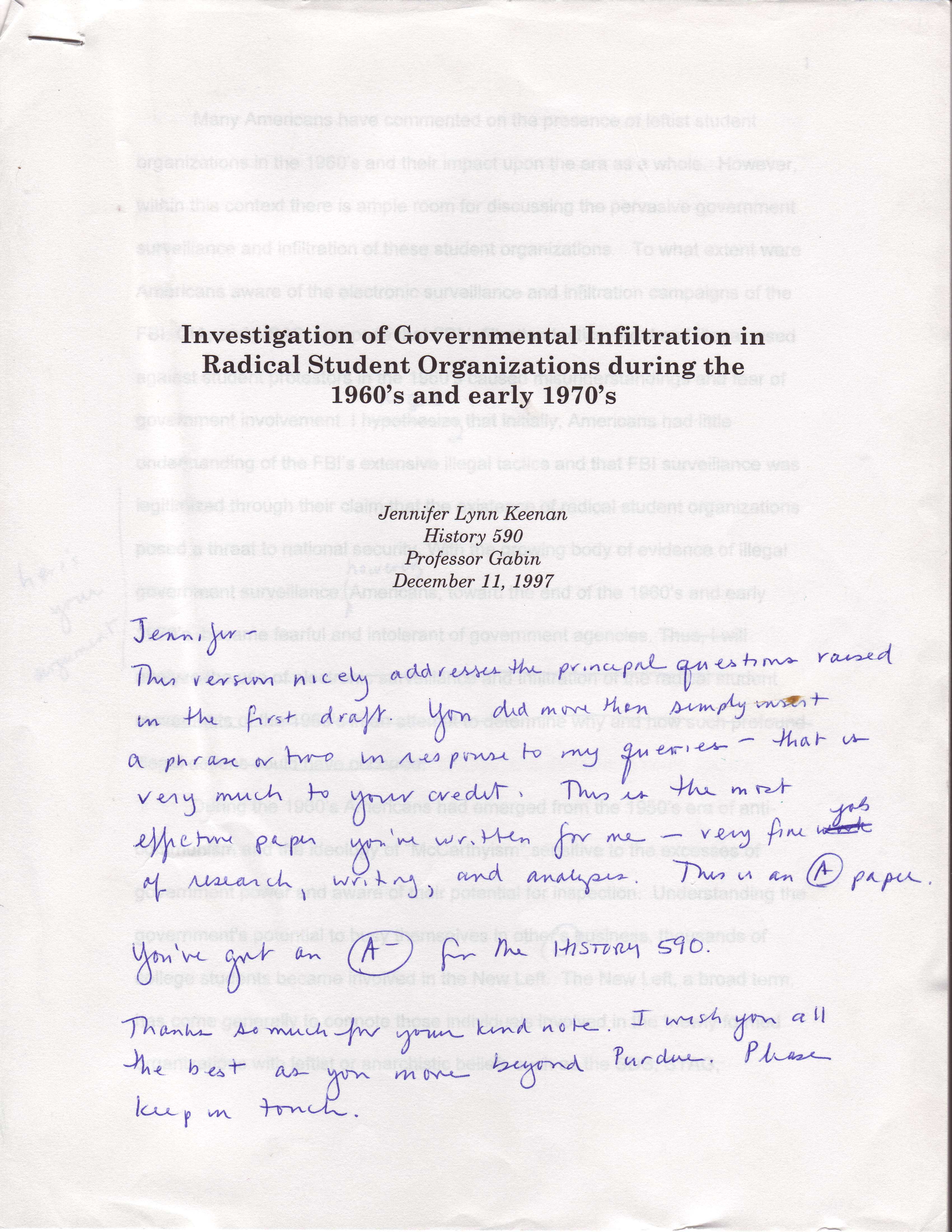 How wonderful to hear from you!  I do remember you and well, I might add.  After you did that independent reading course with me, I developed a course on America in the 1960s, drawing in part on your enthusiasm for the period and your response to the readings we selected.  It is HIST 304:  America in the 1960s and it enrolls 80-90 students every time I teach it (about once every three or four semesters).  I see your writing skills have indeed served you well–your blog is poignant and beautifully written.