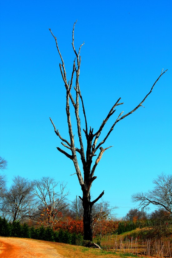 Maybe not a beauty in most eyes, but definitely a beauty in mine. I simply love this tree. I’d imagine that prior to its demise from a lightning strike and fire, it bore an enormous canopy and had great presence next to the water and rows of growing trees. While its limbs are stark, black and bare now, it maintains a great spirit in the field and for that, I love it.
