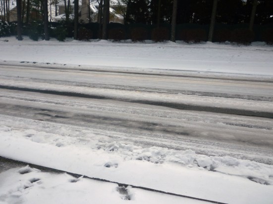We walked. The exercise was great and we survived at least a half-dozen near wipe outs on the ice and the boys ate enough snow and ice to keep them hydrated and entertained.