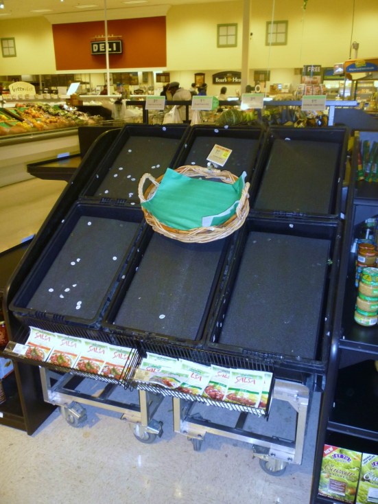 Here is a glimpse of what we saw and what happens in Southern grocery stores when all hell breaks loose with Mother Nature…