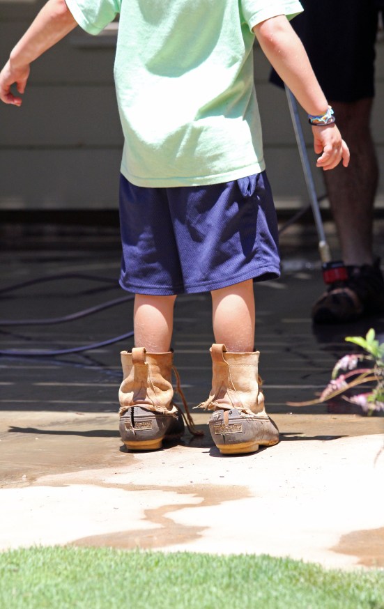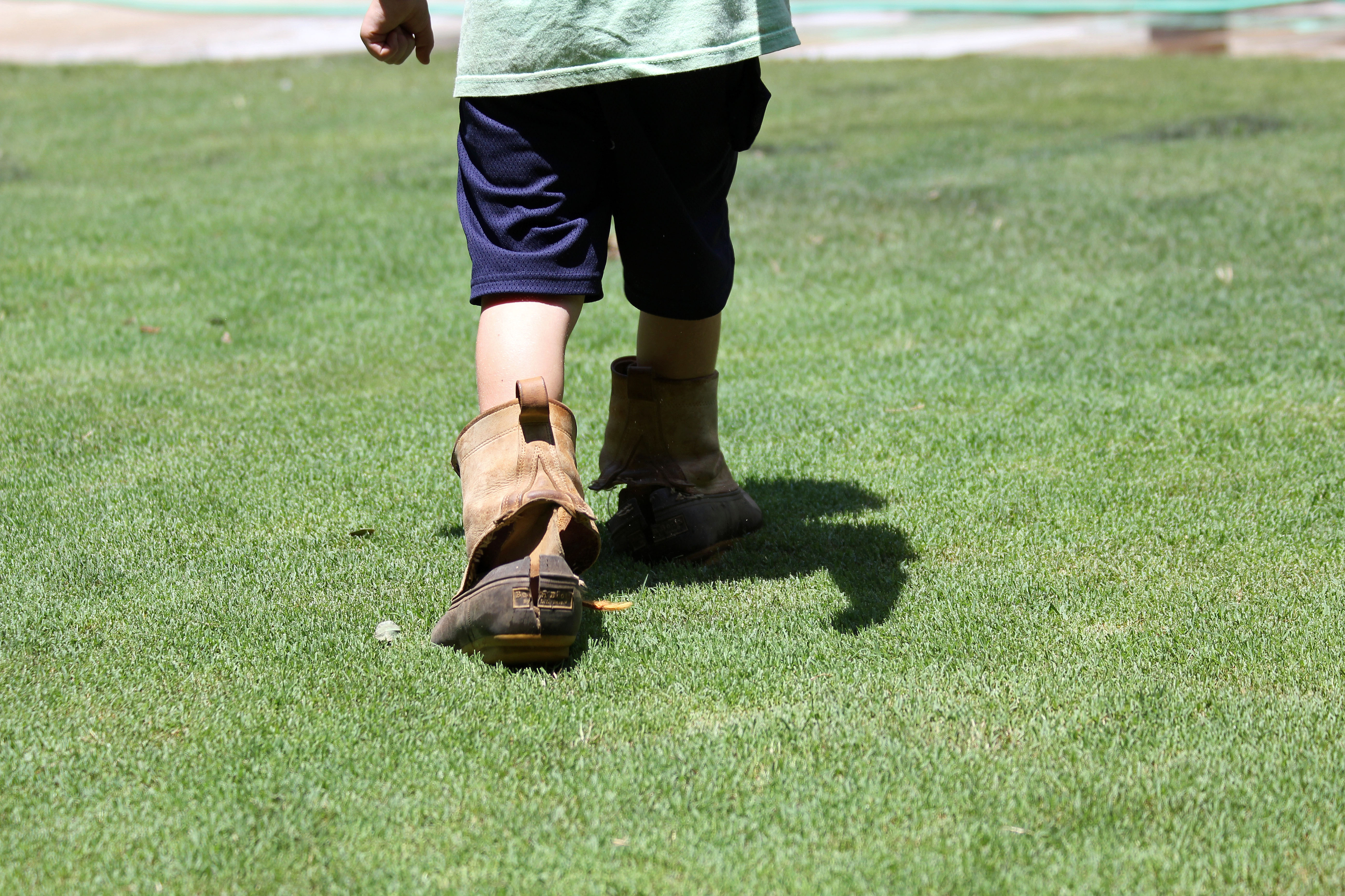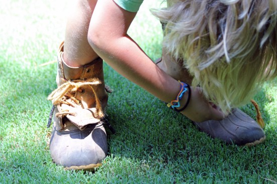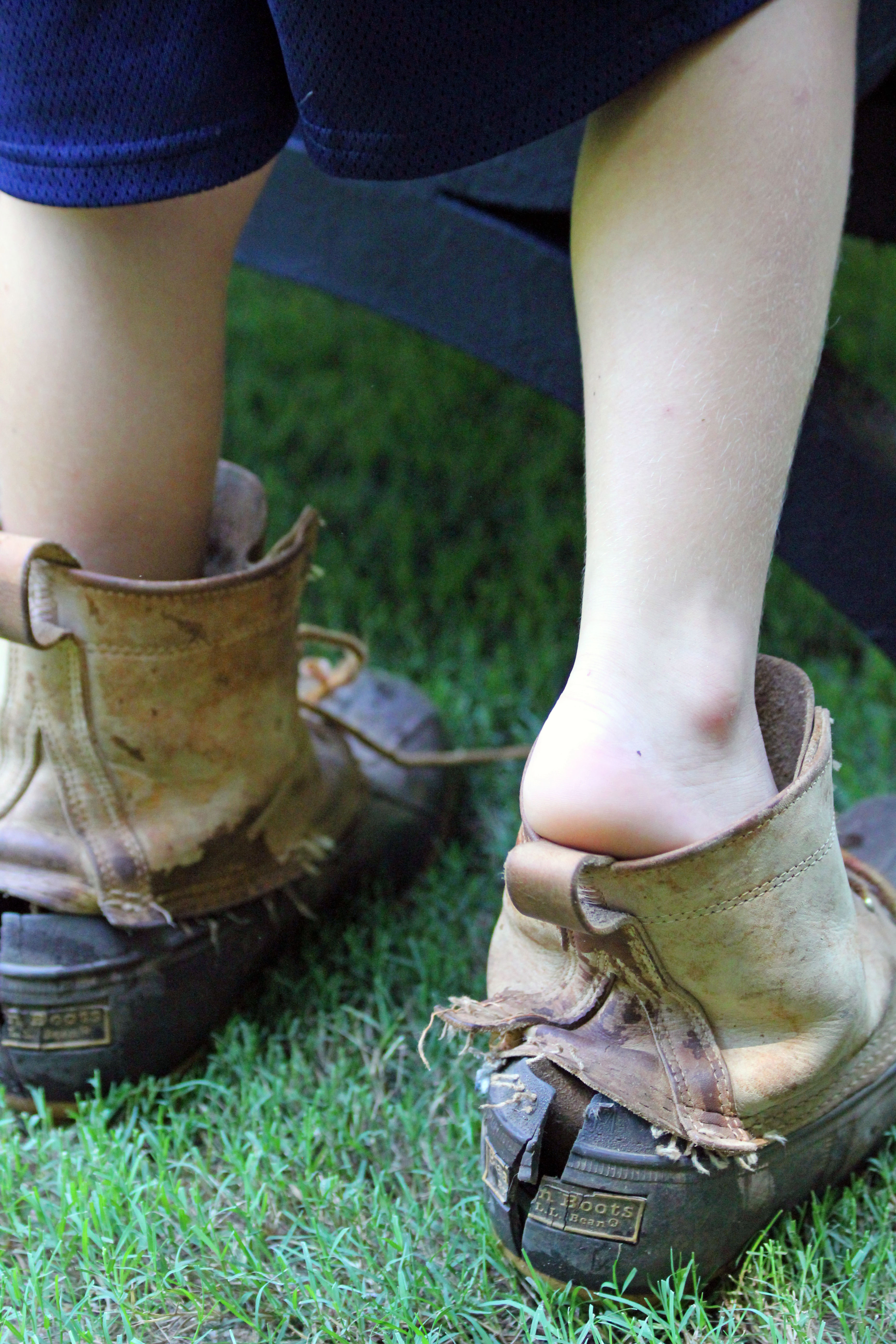They’re at least 15 years old, broken beyond repair and recently retired to a corner in the basement. A young ambitious 6-year-old boy dug them out today, laced them up and set off to find his daddy on a mission to put them back to work. Considering the miles and history, these are some big boots to fill. Enjoy the pictorial.