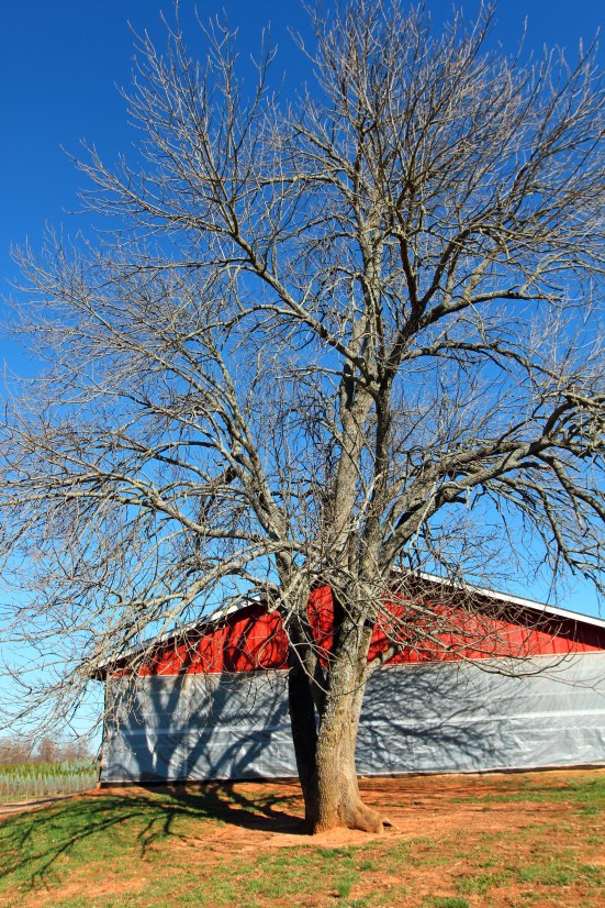 My new beauty, majestic and barren in the cool sunshine, is what I imagine my original tree beauty looked like before she was struck by lightning and charred black from fire.