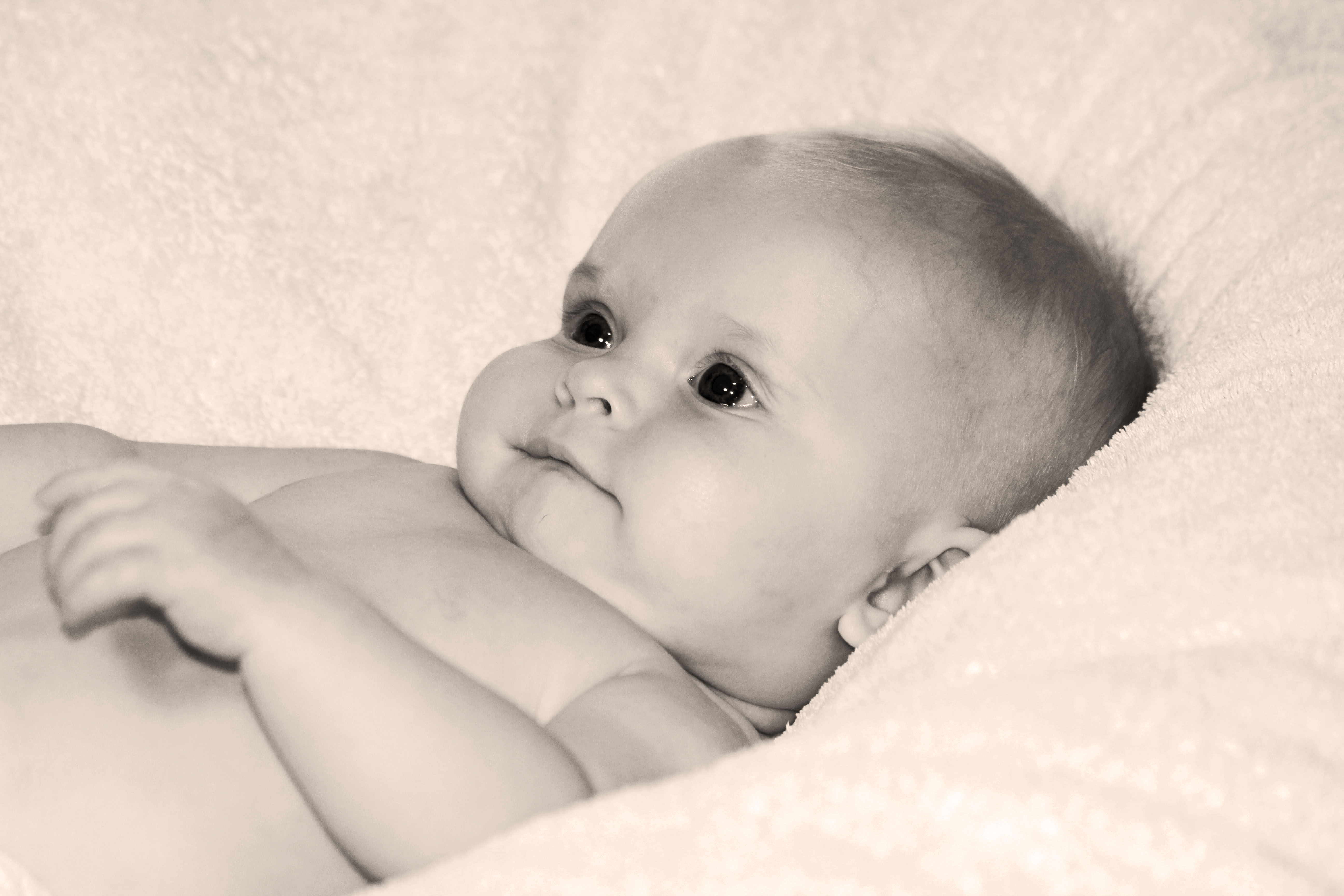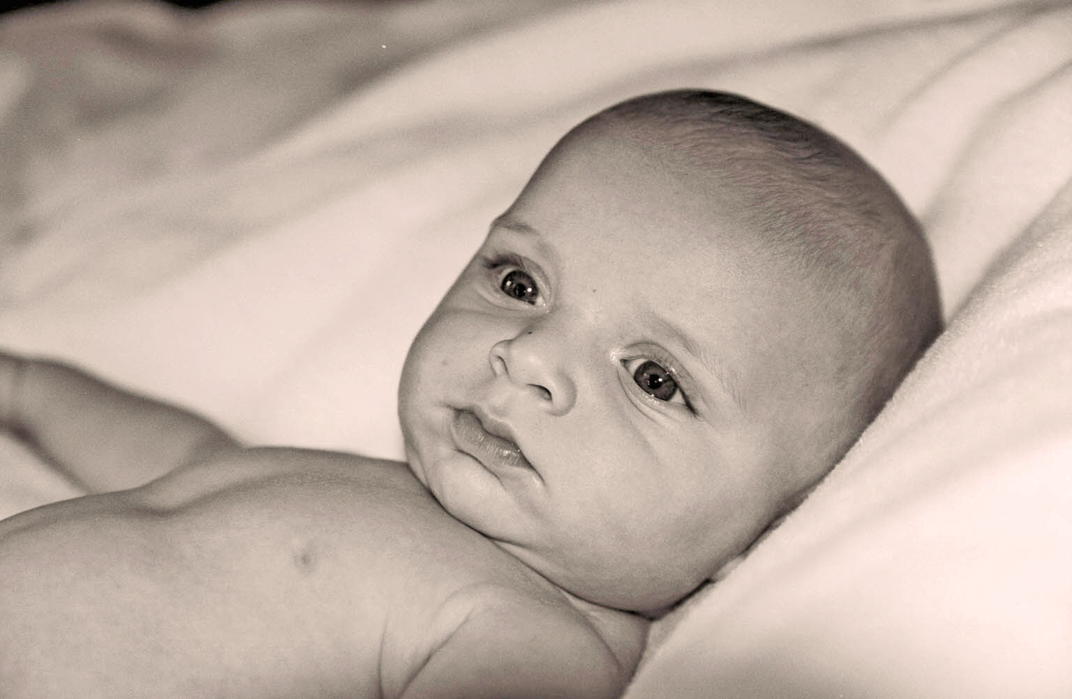 Converted to black and white with a touch of sepia tone, here are our three at four months. Nothing professional and nothing fancy yet remarkable representations of their striking similarities and differences.