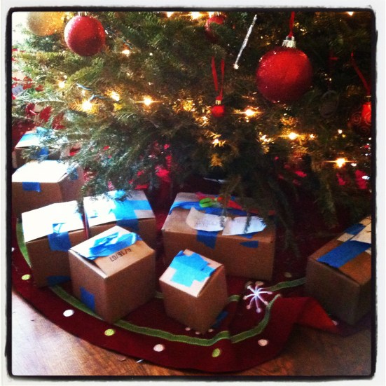 “Shopping” and wrapping and tagging gifts galore. One more week and the mystery of his creative generosity will be revealed and I suspect a significant amount of pocket change too.